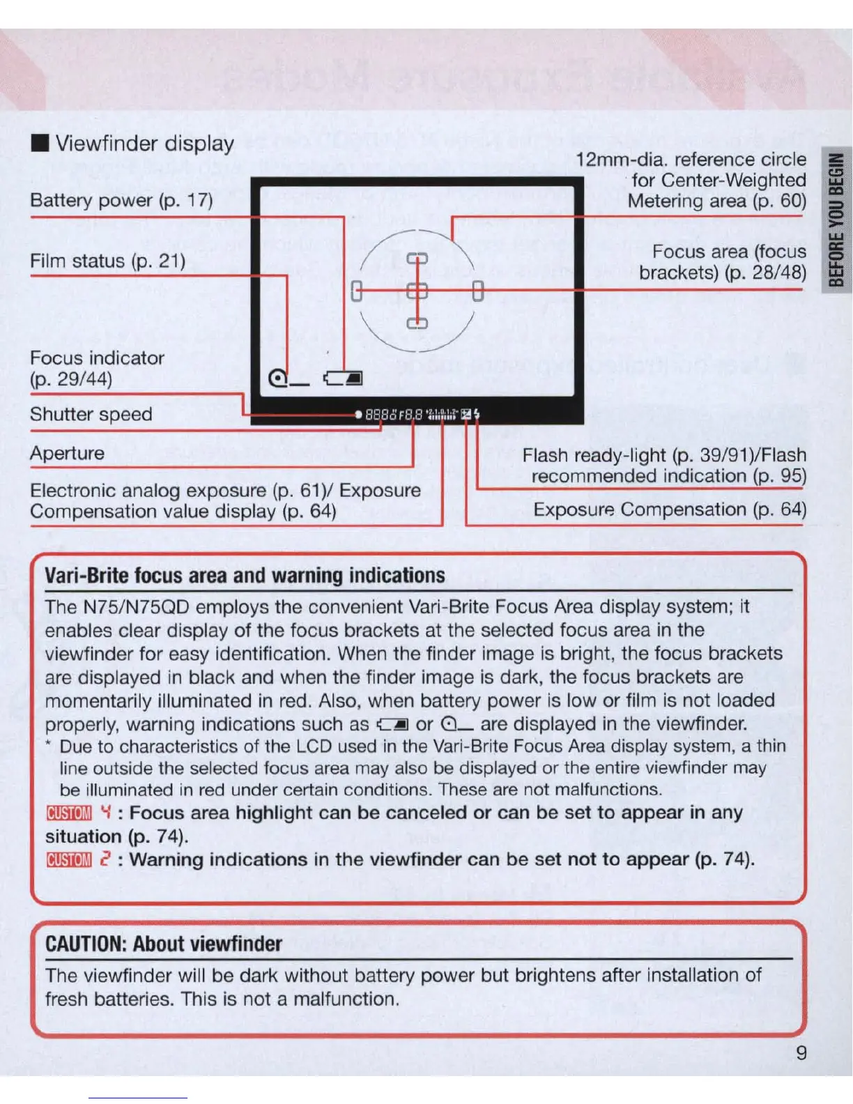 The N75/N75QD employs the convenient Vari-Brite Focus Area display system; it