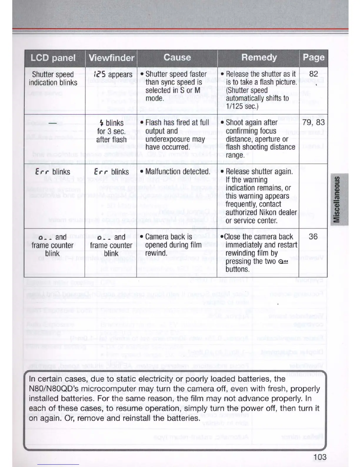 N80/N80QD's microcomputer may turn the camera off, even with fresh, properly