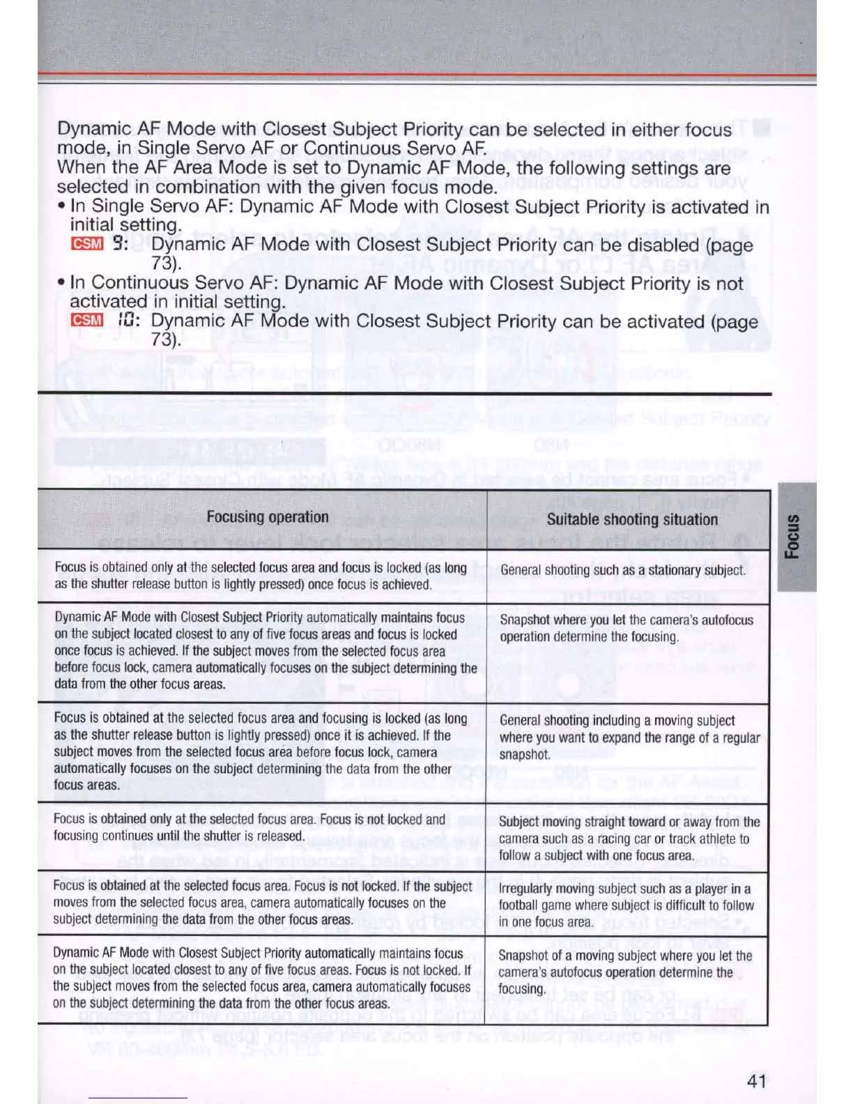 Mode with Closest Subject Priority can be activated (page
