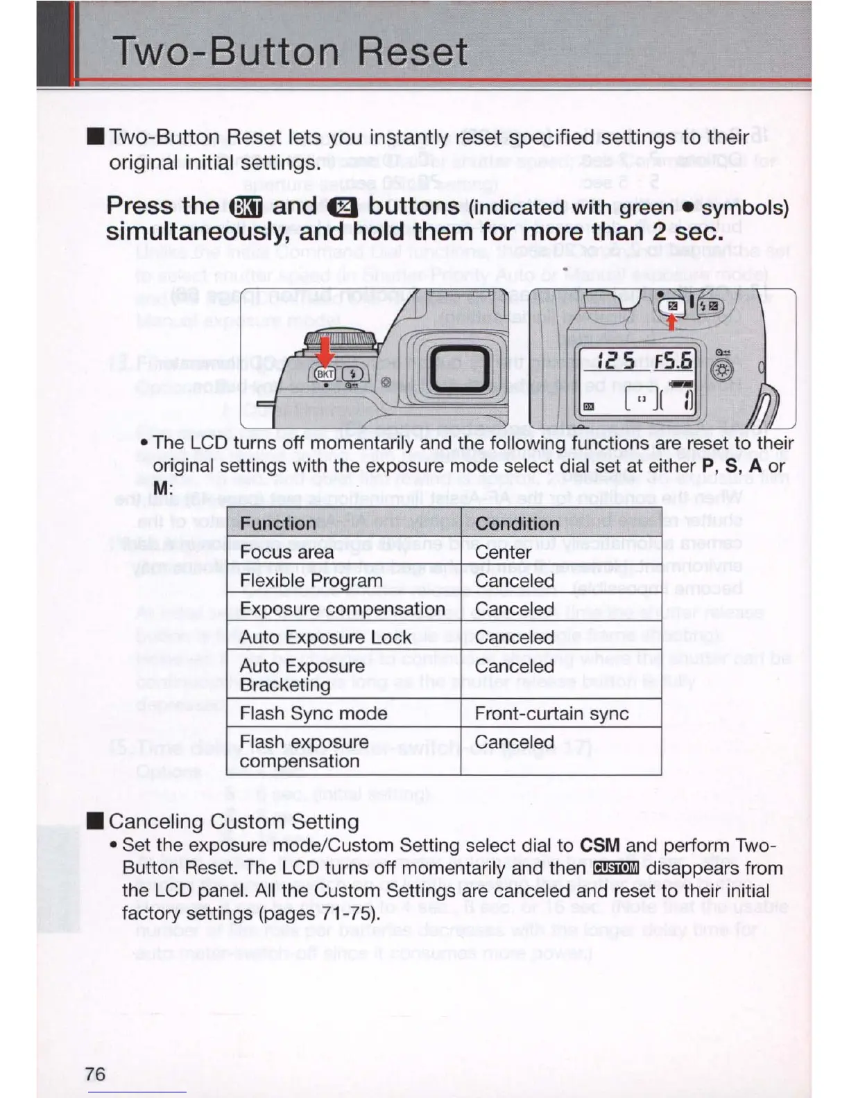 the LCD panel. All the Custom Settings are canceled and reset to their initial