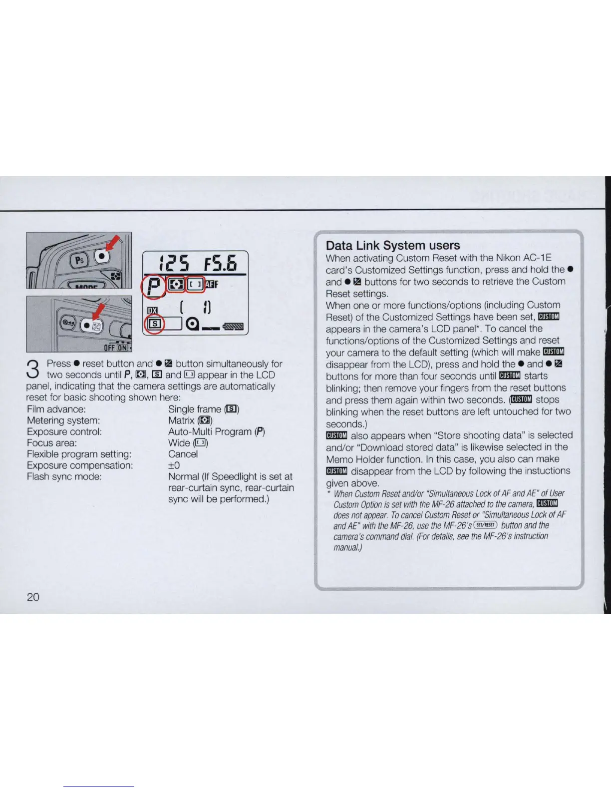 When activating Custom Reset with the Nikon