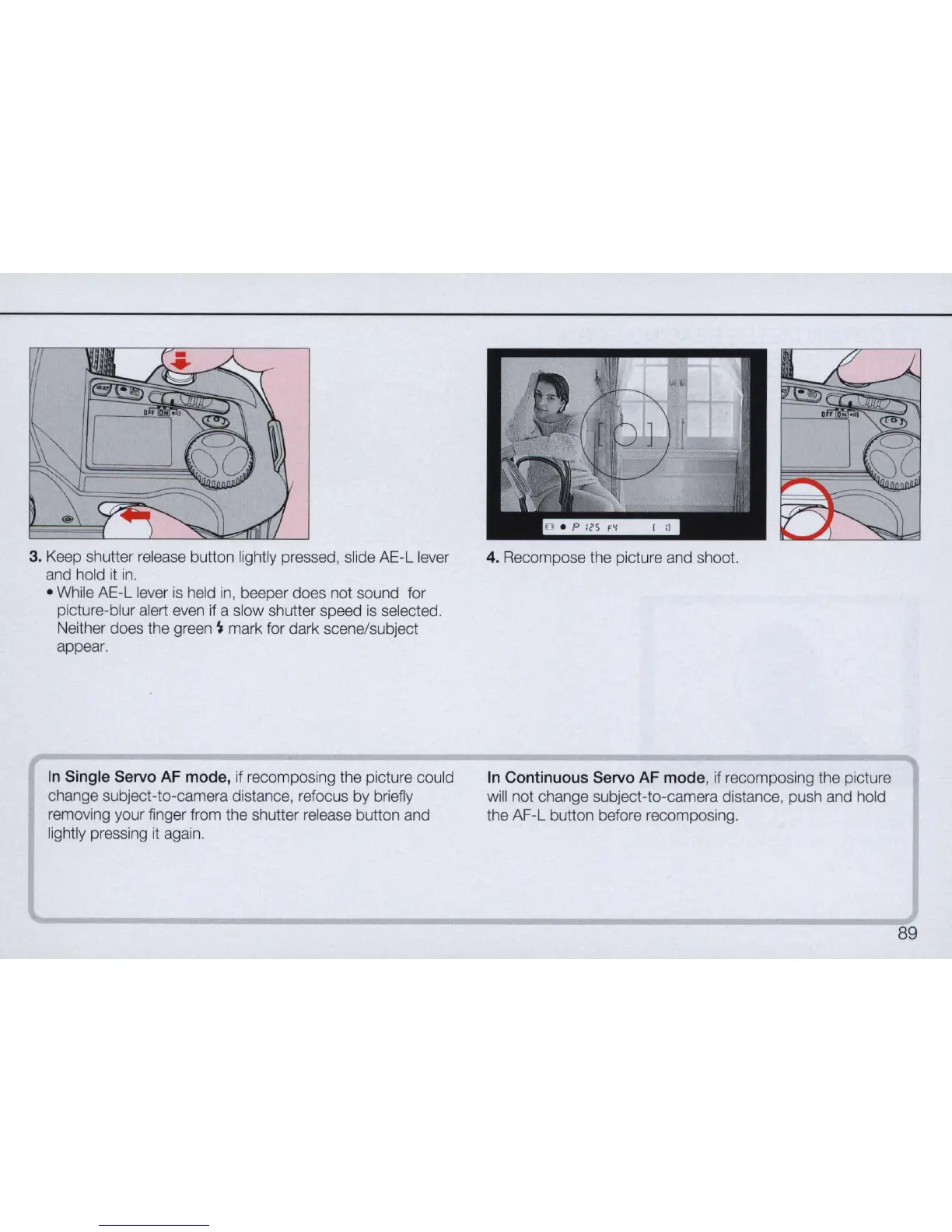3. Keep shutter release button lightly pressed, slide AE-L lever