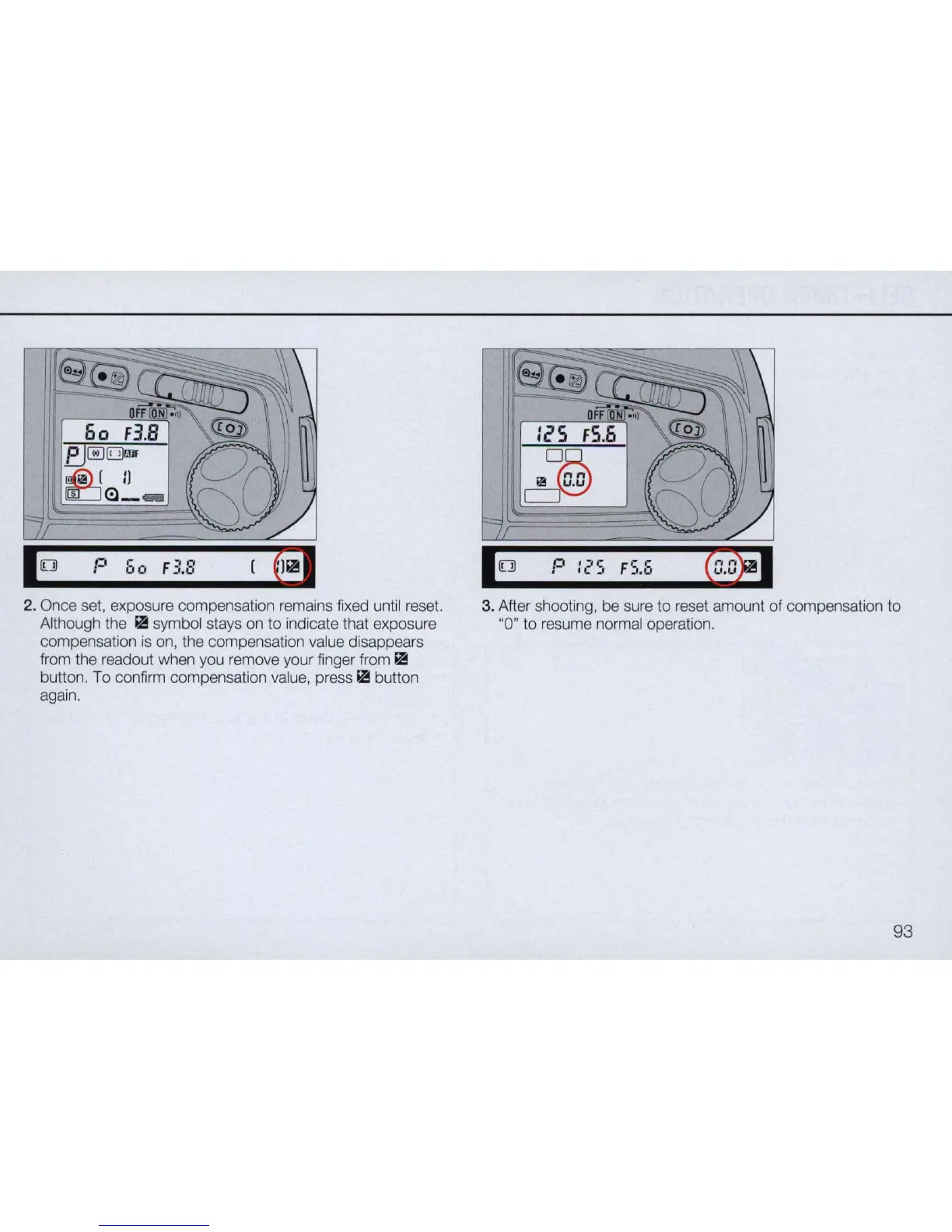 2. Once set, exposure compensation remains fixed until reset.
