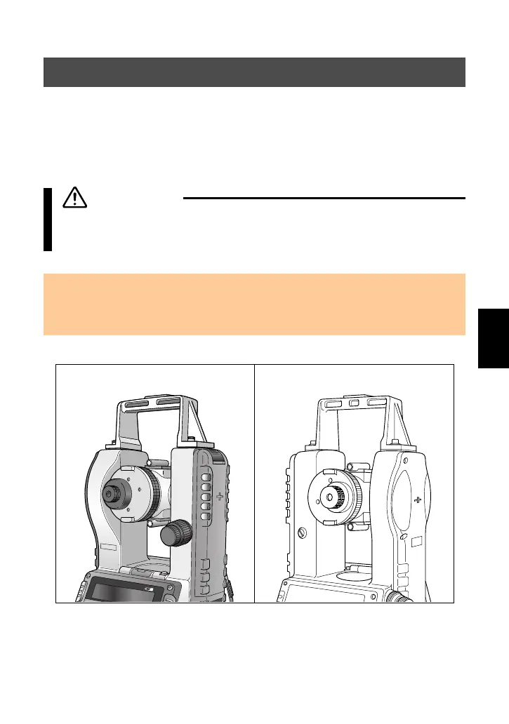 ■ Be careful not to insert your finger between the telescope and