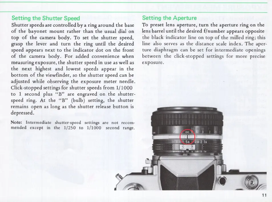 Nikon Nikkormar FT3 - Setting the Shutter Speed; Setting the Aperture