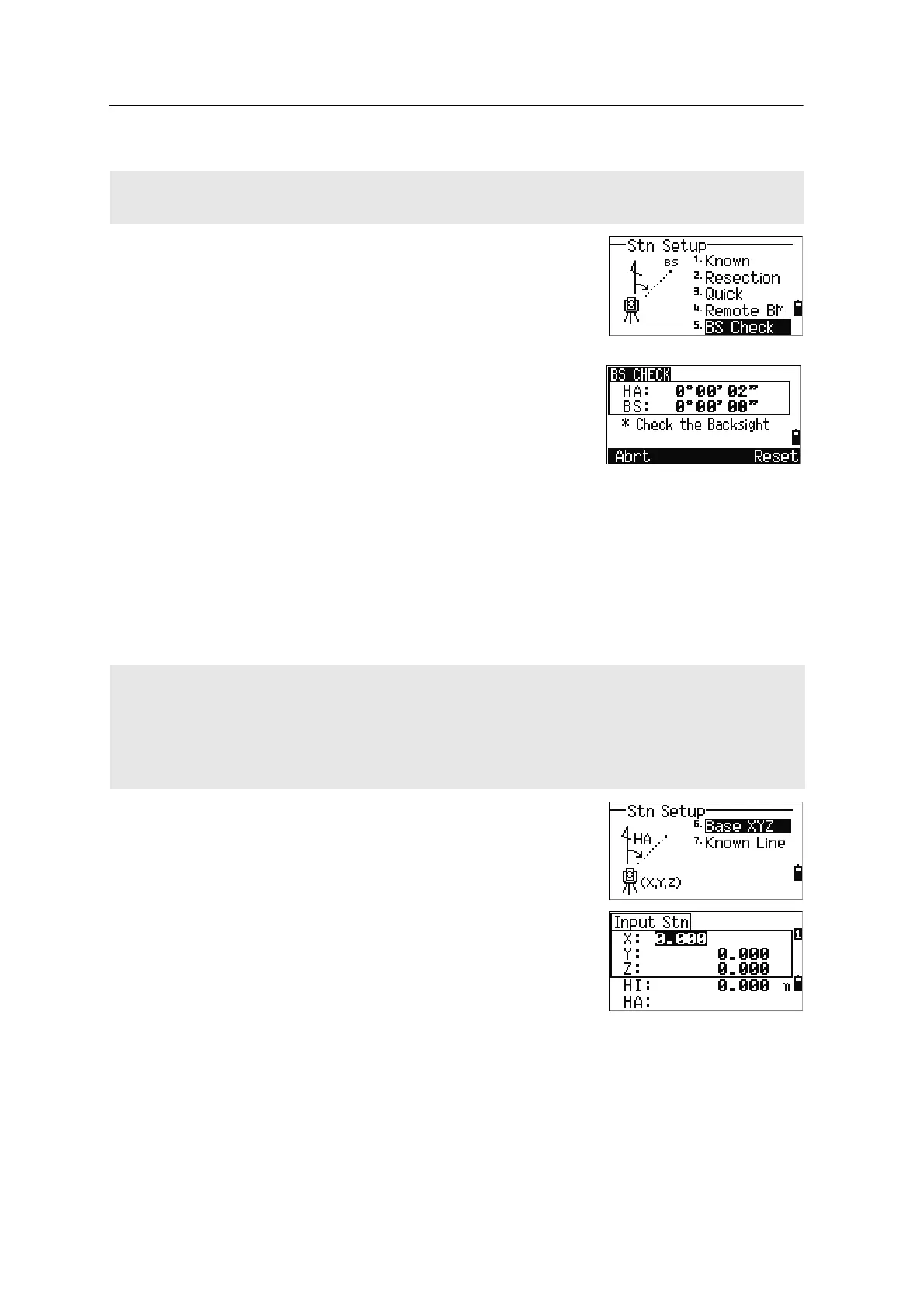 Base XYZ does not store a ST record, so the BS Check cannot check the backsight when you enter a station