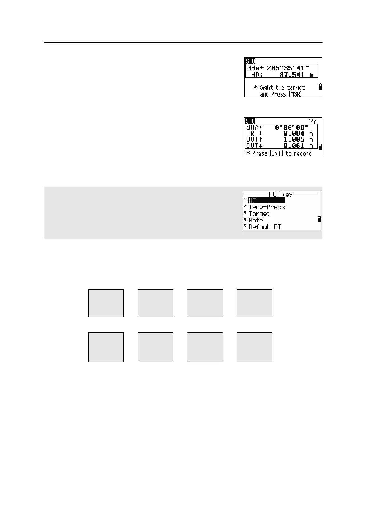 If you press [HOT] in any observation screen, the HOT key menu appears. You