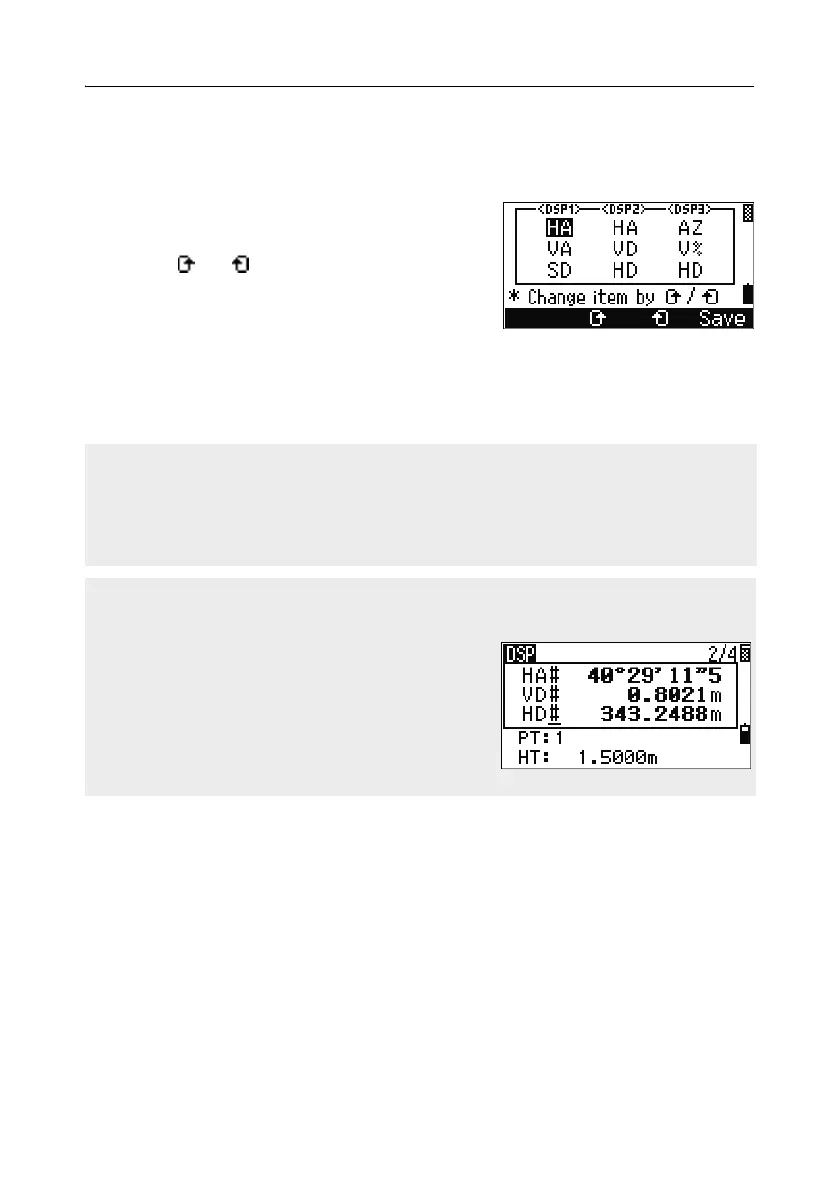 The items displayed in the DSP1, DSP2, DSP3, and DSP4 screens are also used in