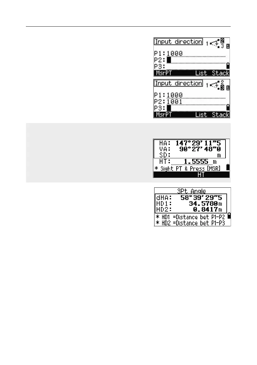 When you press the MSR softkey, a temporary measuring screen appears. Sight the