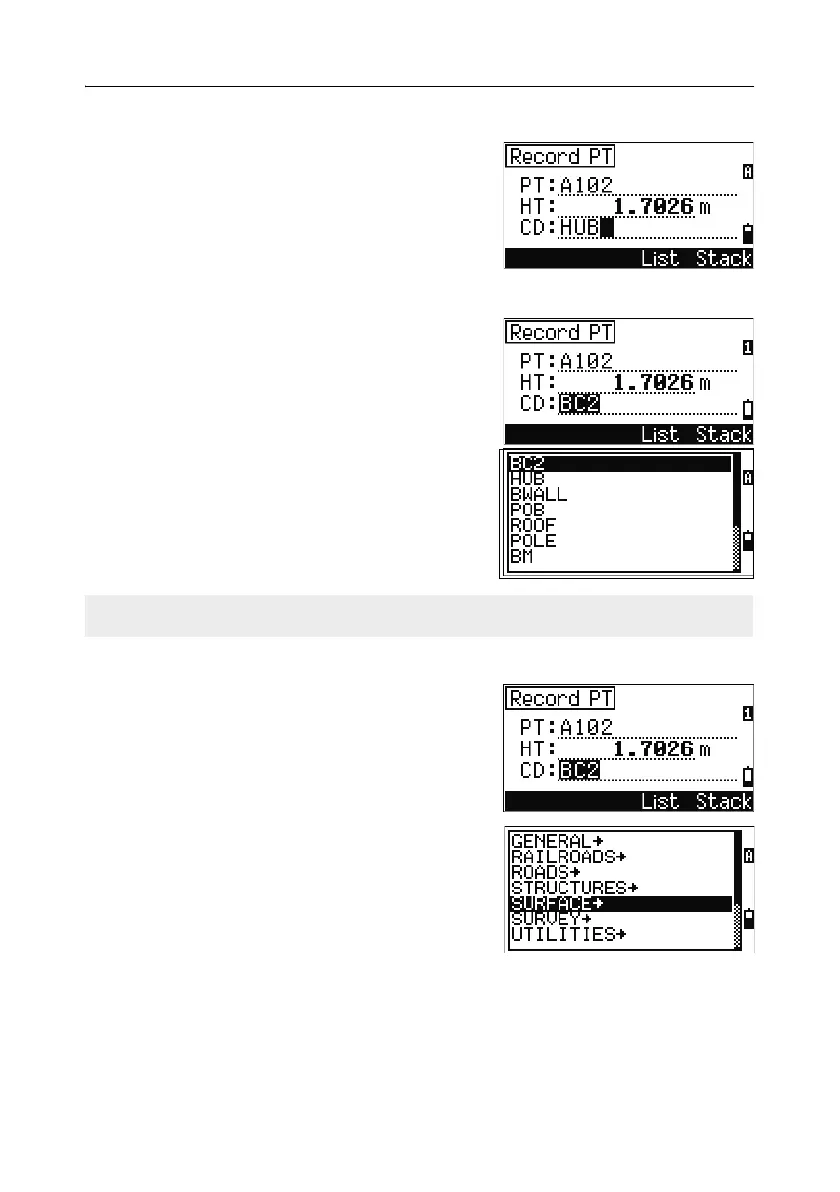 Entering a code from the code list