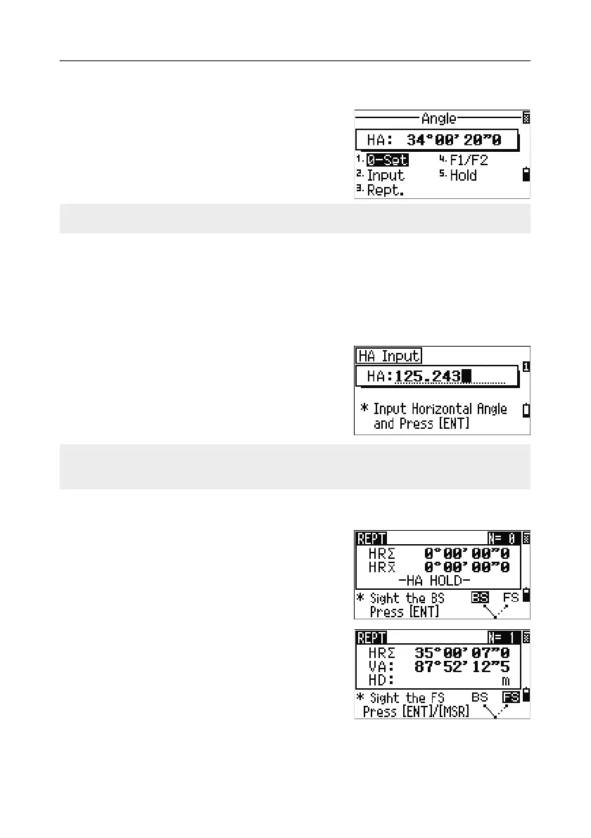 To reset the horizontal angle to 0, press [1] or select 0-Set in the Angle menu. The