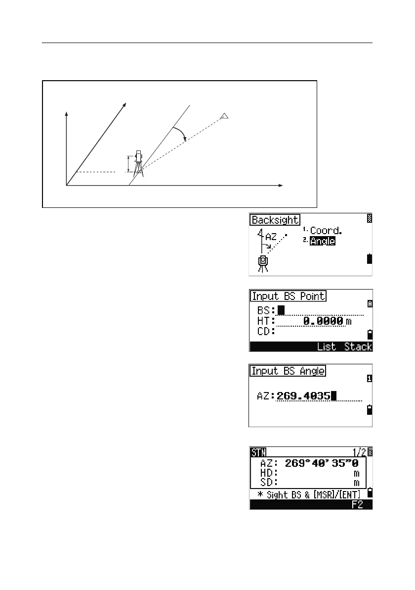 Sighting the backsight by entering the azimuth angle