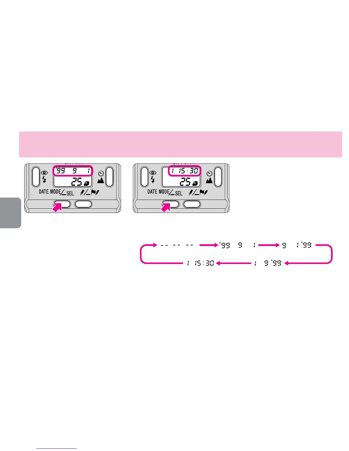 •Wählen Sie eine der fünf möglichen Schreibweise durch Druck auf die DATE MODE-