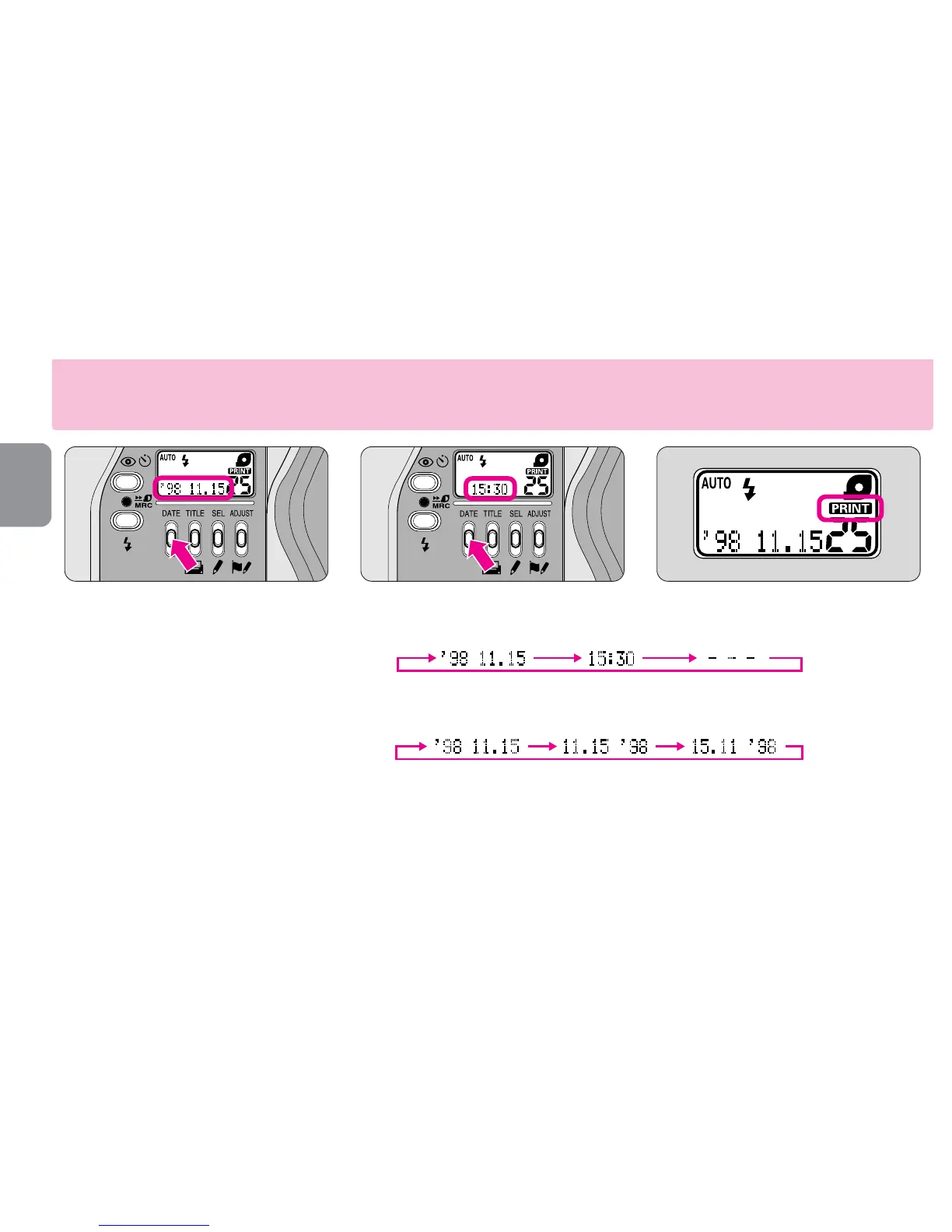•Press the DATE button to select one of three displays. Each time the button is pressed,