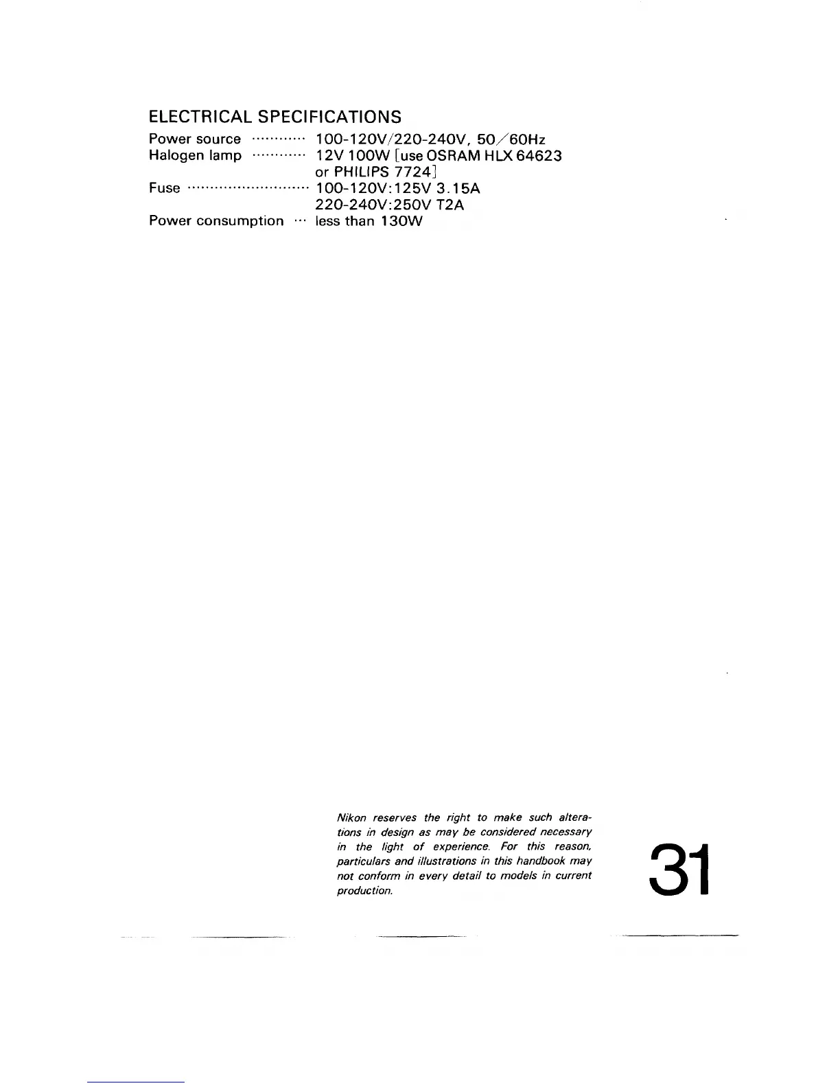 Nikon OPTIPHOT-2 - Electrical Specifications