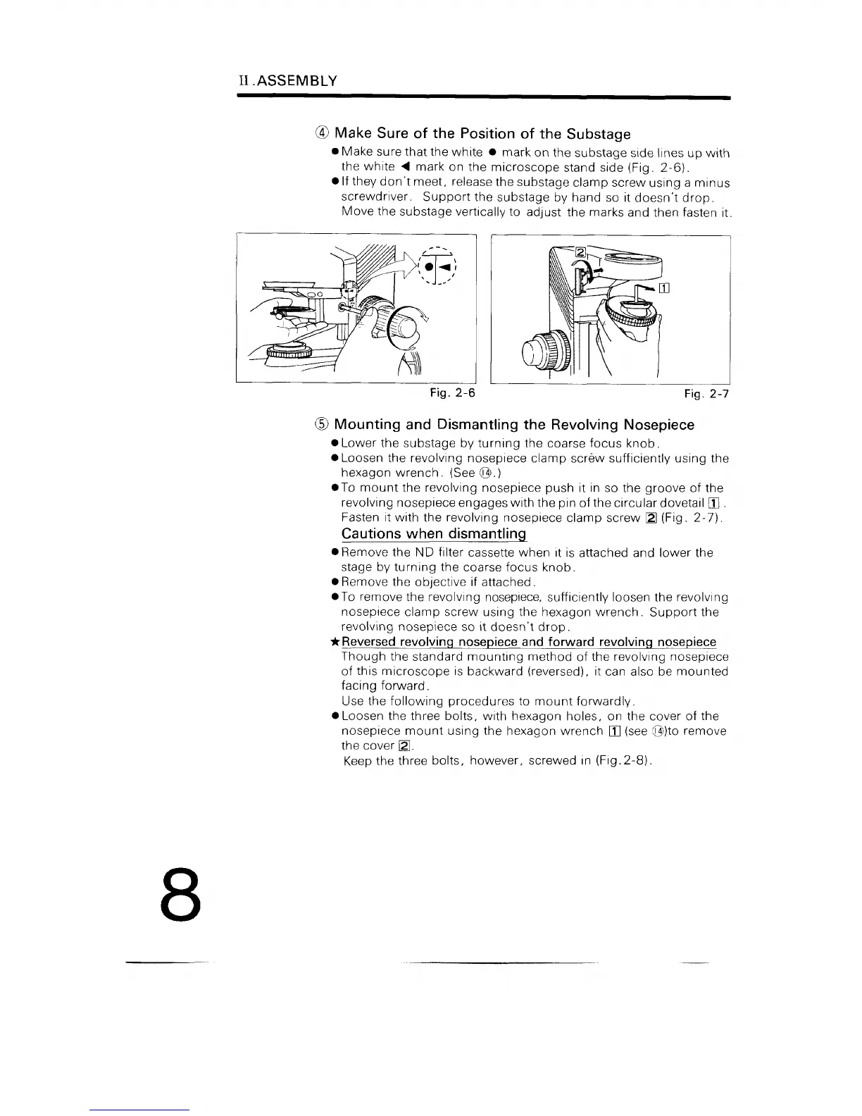 Nikon OPTIPHOT-2 - Make Sure of the Position of the Substage; Mounting and Dismantling the Revolving Nosepiece