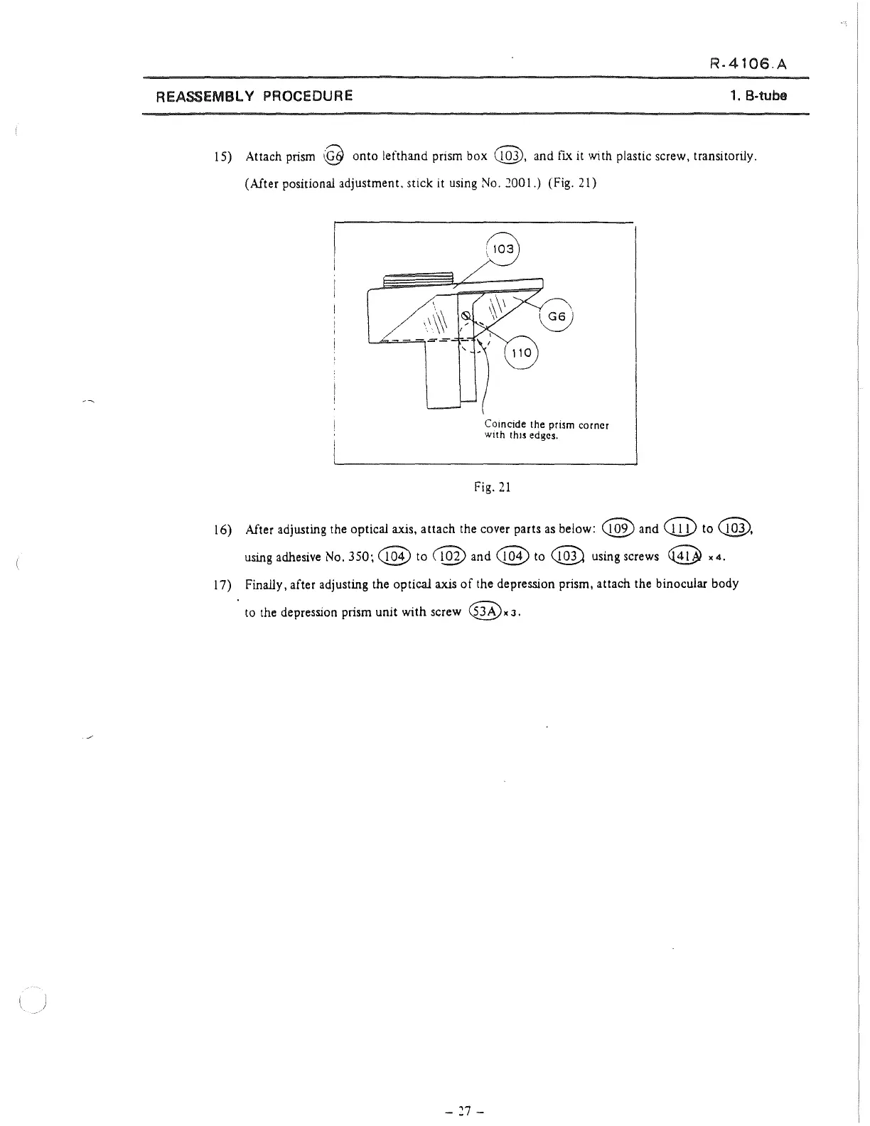 the depression prism, attach the binocular body