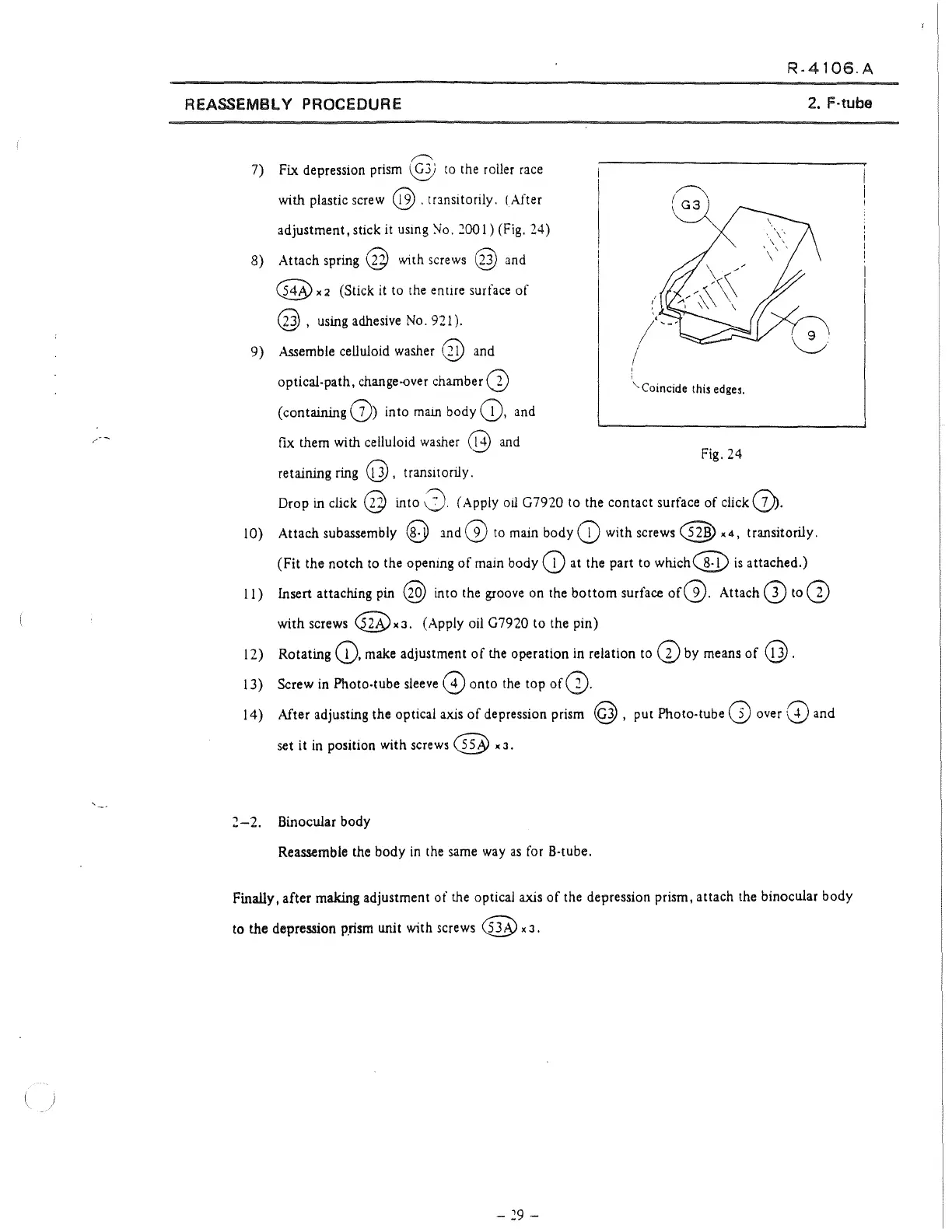 optical axis of the depression prism, attach the binocular body