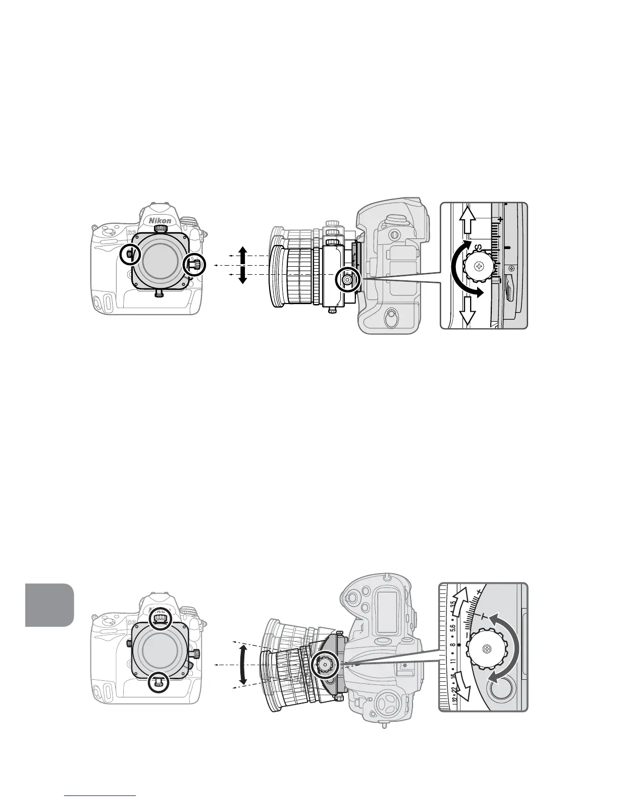 • 当镜头装在D3以外的相机上时,请小心对镜头进行移轴及/或倾