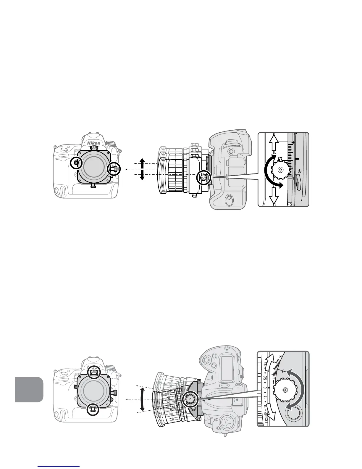 • 當鏡頭安裝在D3以外的相機上時,請特別注意移軸及或俯仰