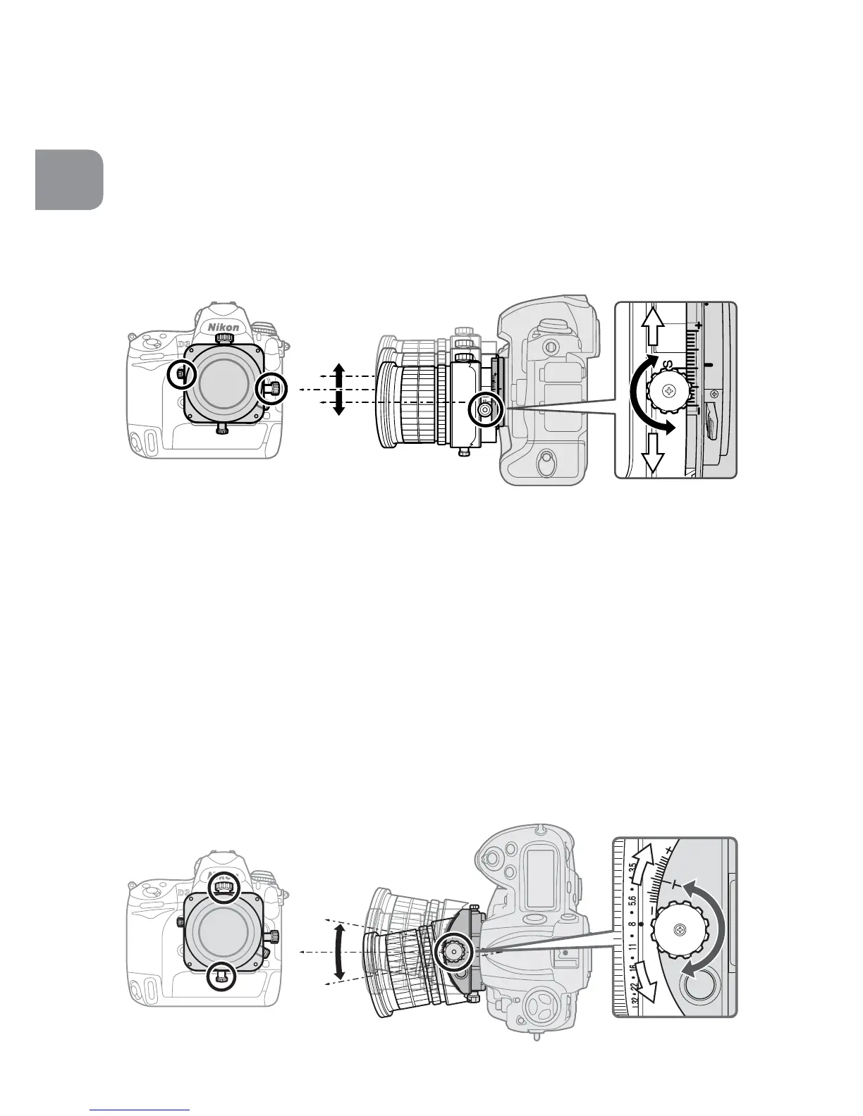 • After shifting, tighten the shift lock release knob to fix the lens’