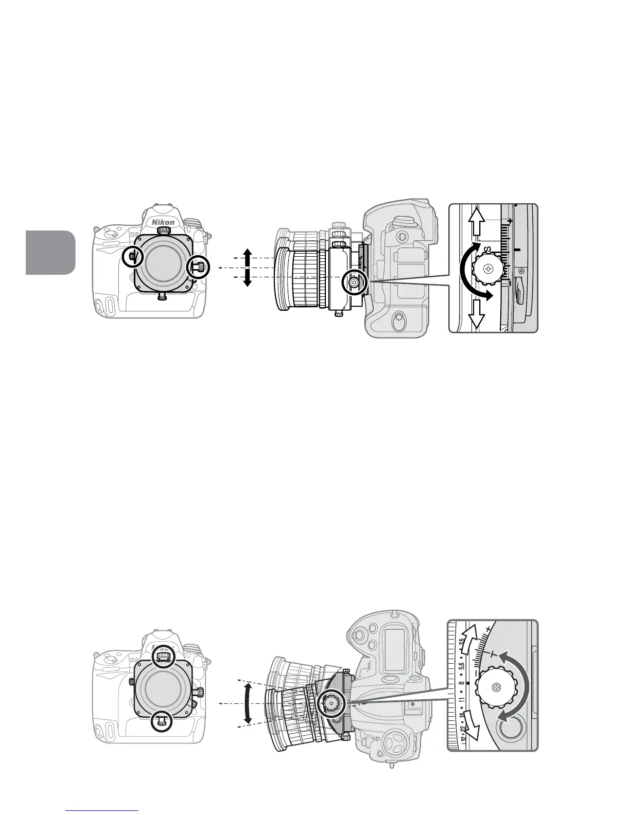 verticale, à la rotation de l’objectif) parallèlement au plan film (± 11,5 mm).
