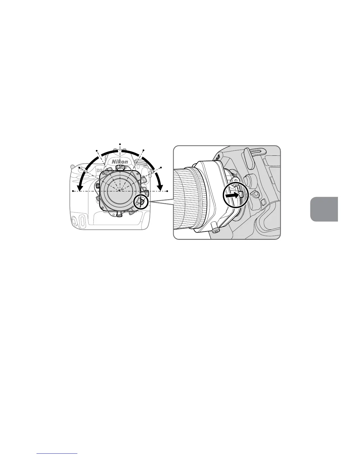 • Efter tiltning, dra åt ratten till tiltlåset för att låsa objektivets läge.