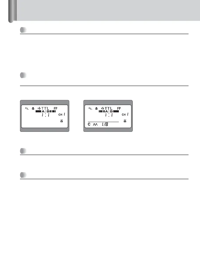 • Flash output level ratio between groups A and B (in TTL mode)