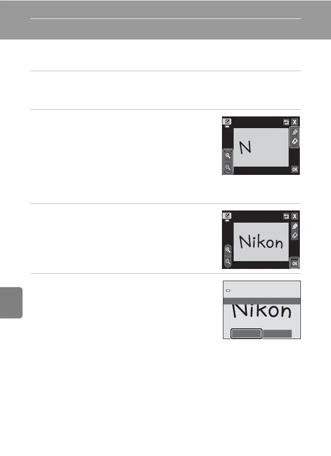 • Tap I (pen) to write text or draw images (E15).