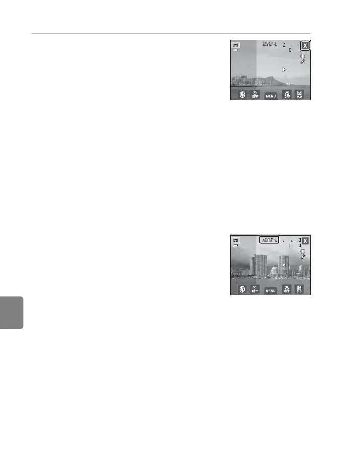 • Shooting for the panorama series is terminated if the auto off function (E75) initiates standby