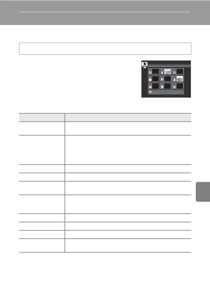 * Pictures taken in scene auto selector scene mode (A43) are also sorted into the