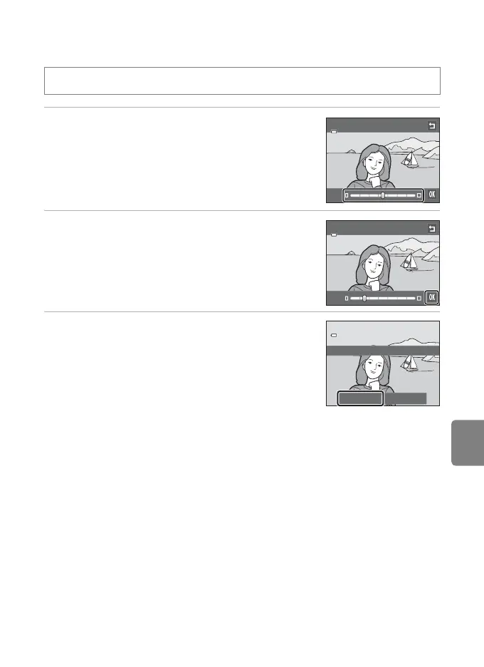 c button (playback mode) M Tap the d tab M Tap M Retouch M P Stretch