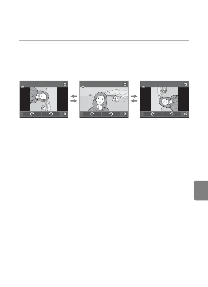 c button (playback mode) M Tap the d tab M Tap M Retouch M f Rotate image
