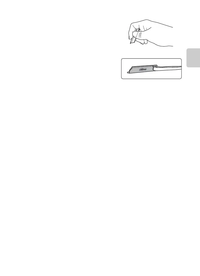 • Do not carry the camera by the stylus. The stylus may slip off the strap and the camera may fall.