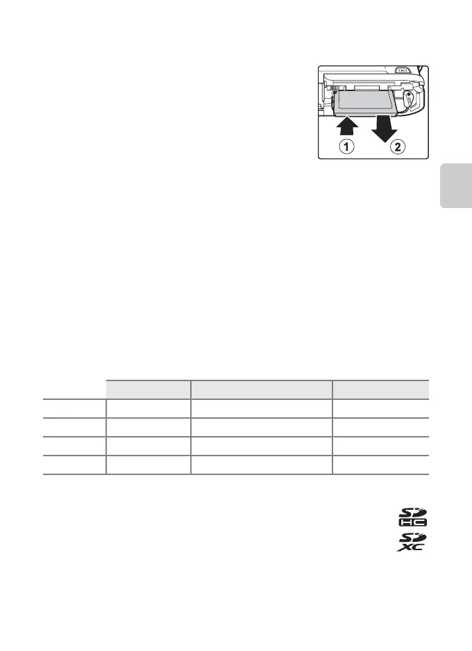 Gently push the memory card into the camera (1) to