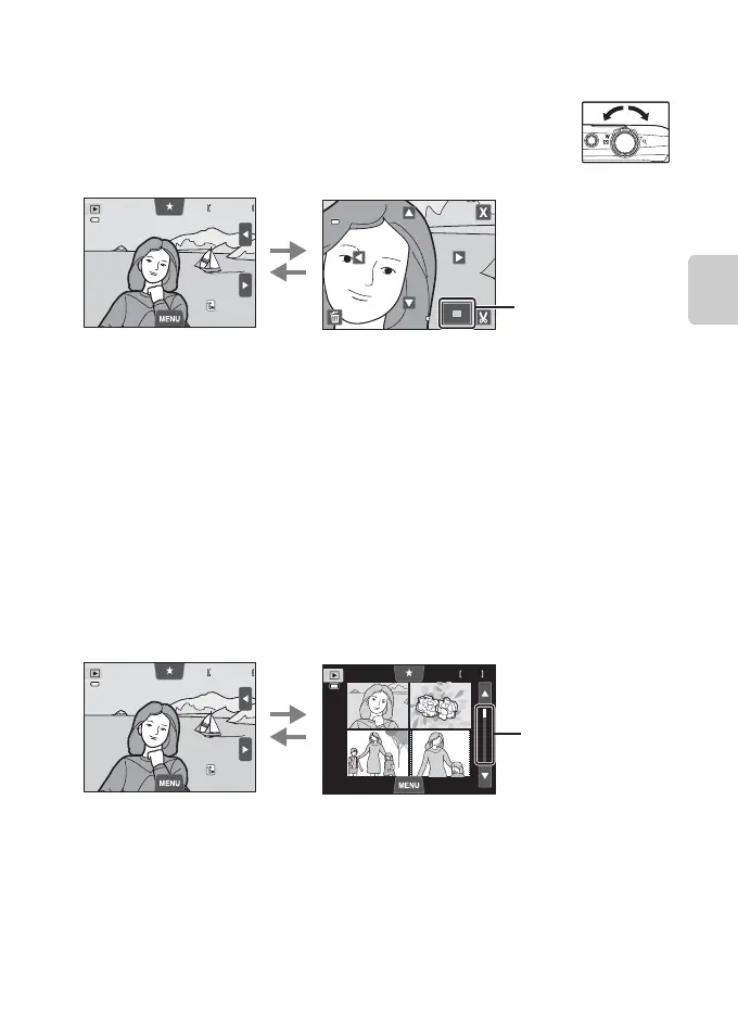• If you are viewing a image that was taken using face detection (A68) or pet