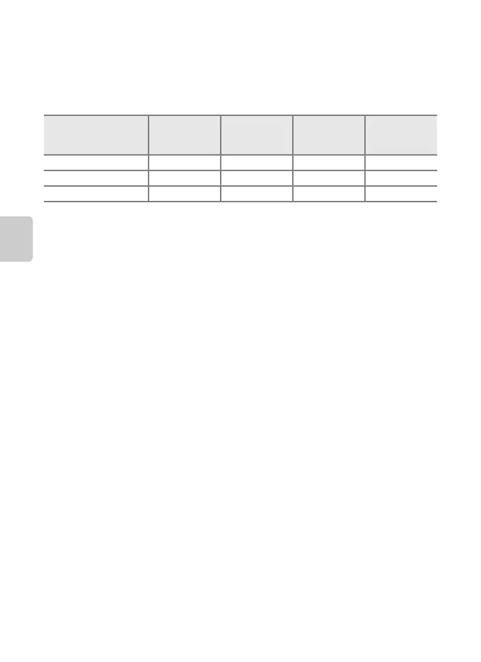 The default settings for each function in each shooting mode are described below.