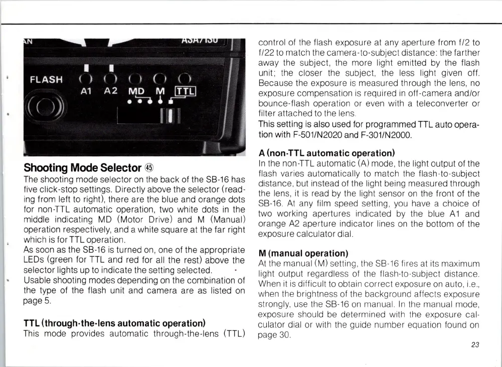 the non-TTL automatic (A) mode, the light output of the