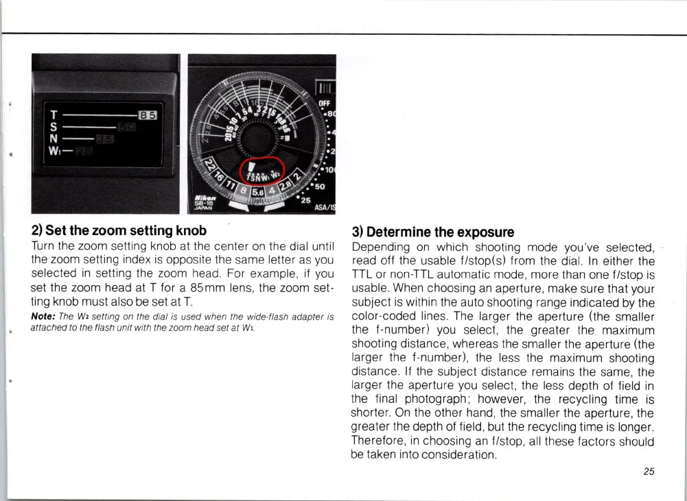 setting on the dial is used when the wide· flash adapter is