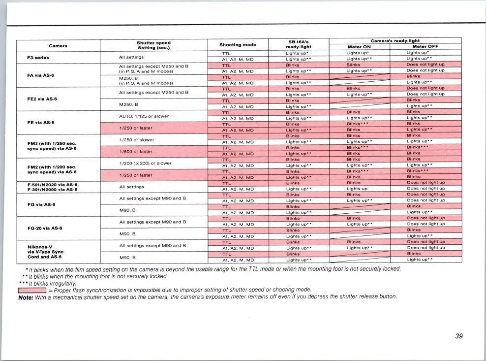 blinks when the film speed setting on the camera