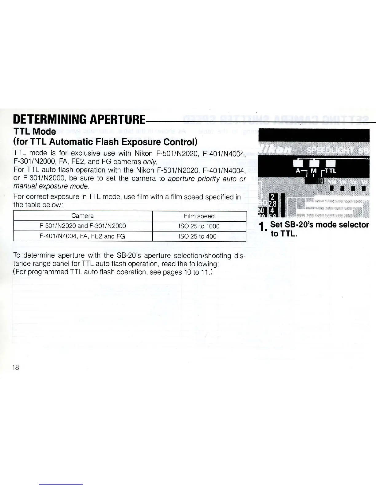 (For programmed TTL auto flash operation, see pages