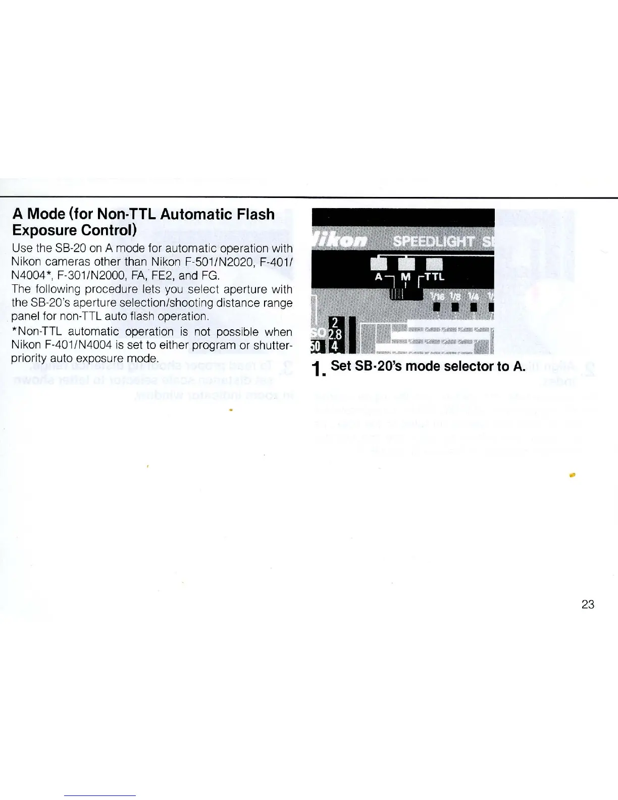 A Mode (for Non·TTL Automatic Flash