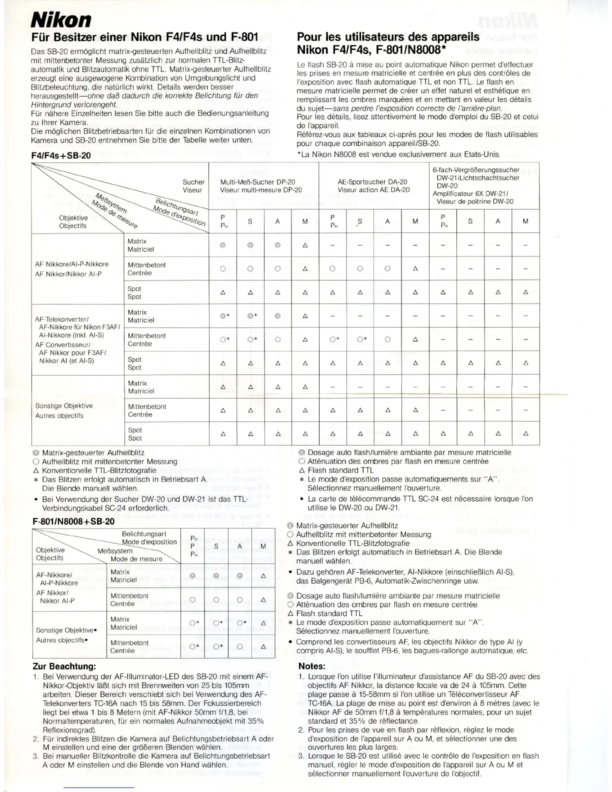 Kamera und SB-20 entnehmen Sie bitte der Tabelle weiter unten.