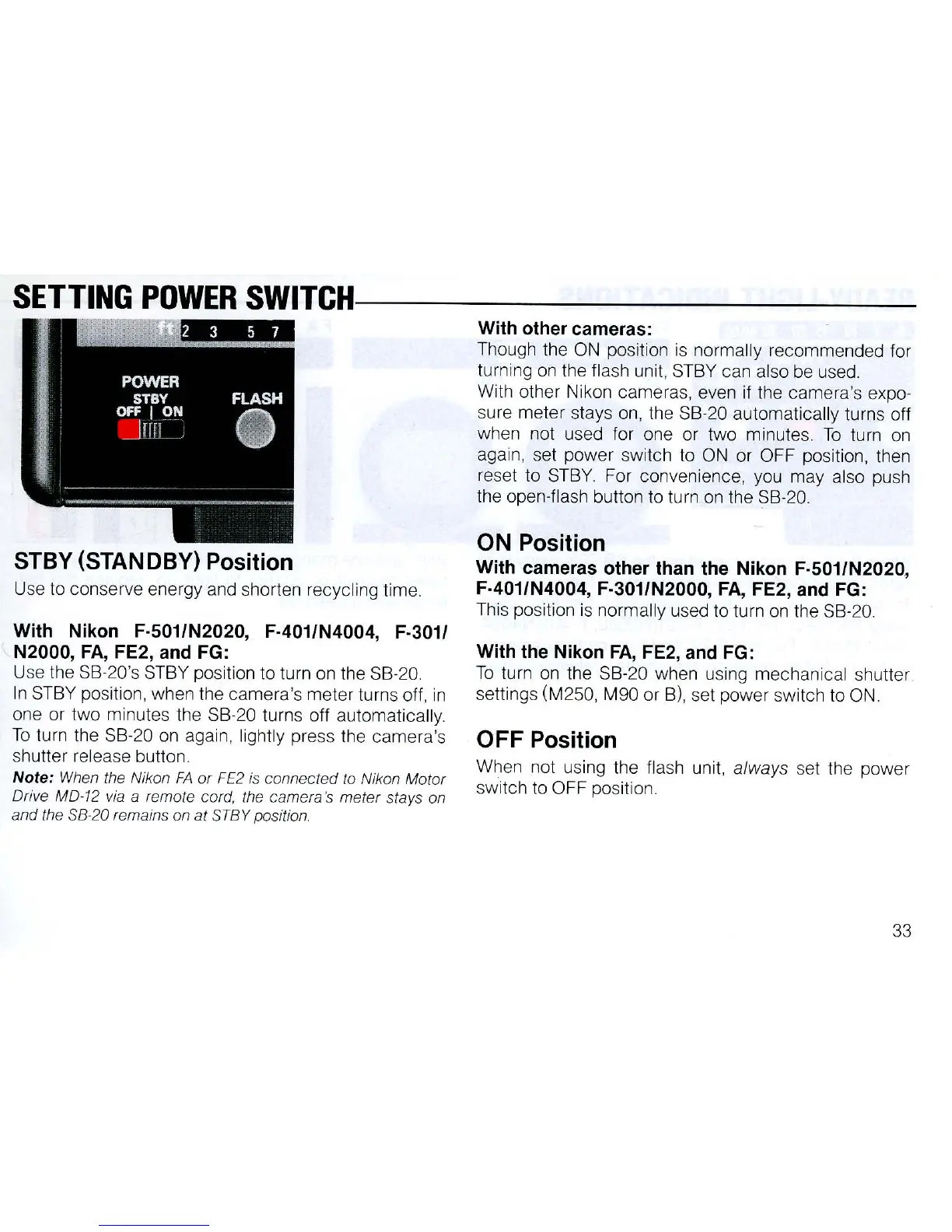 With cameras other than the Nikon F·501/N2020,