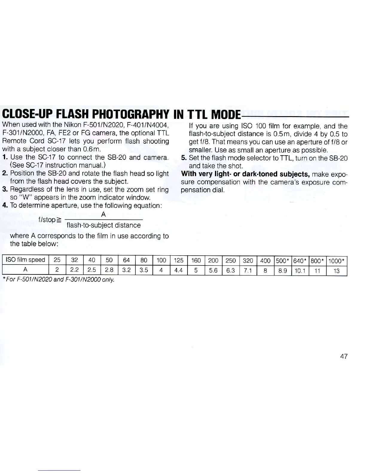 When used with the Nikon F-501/N2020, F-401/N4004,