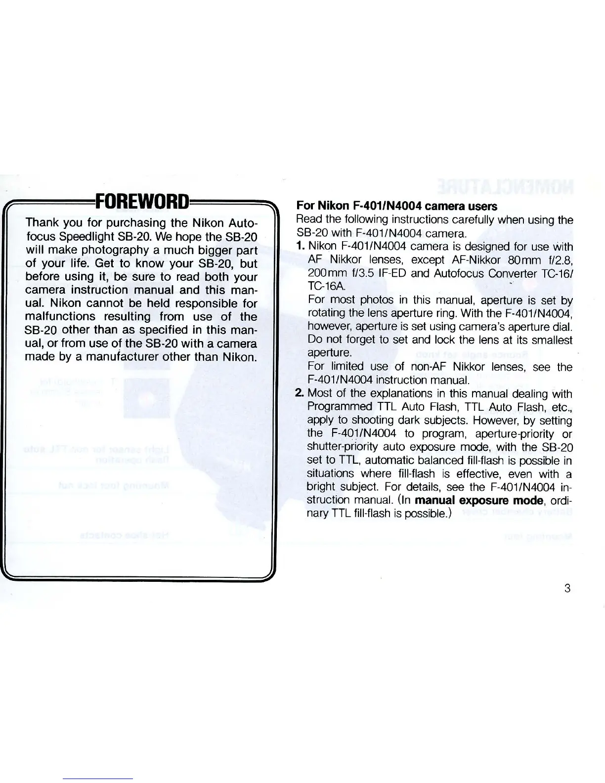 For Nikon F·401/N4004 camera users