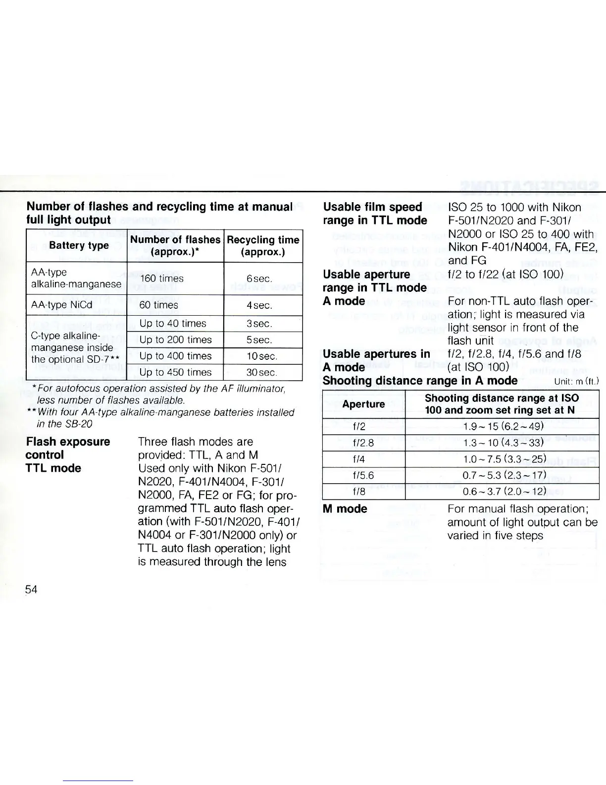 For non-TTL auto flash oper-