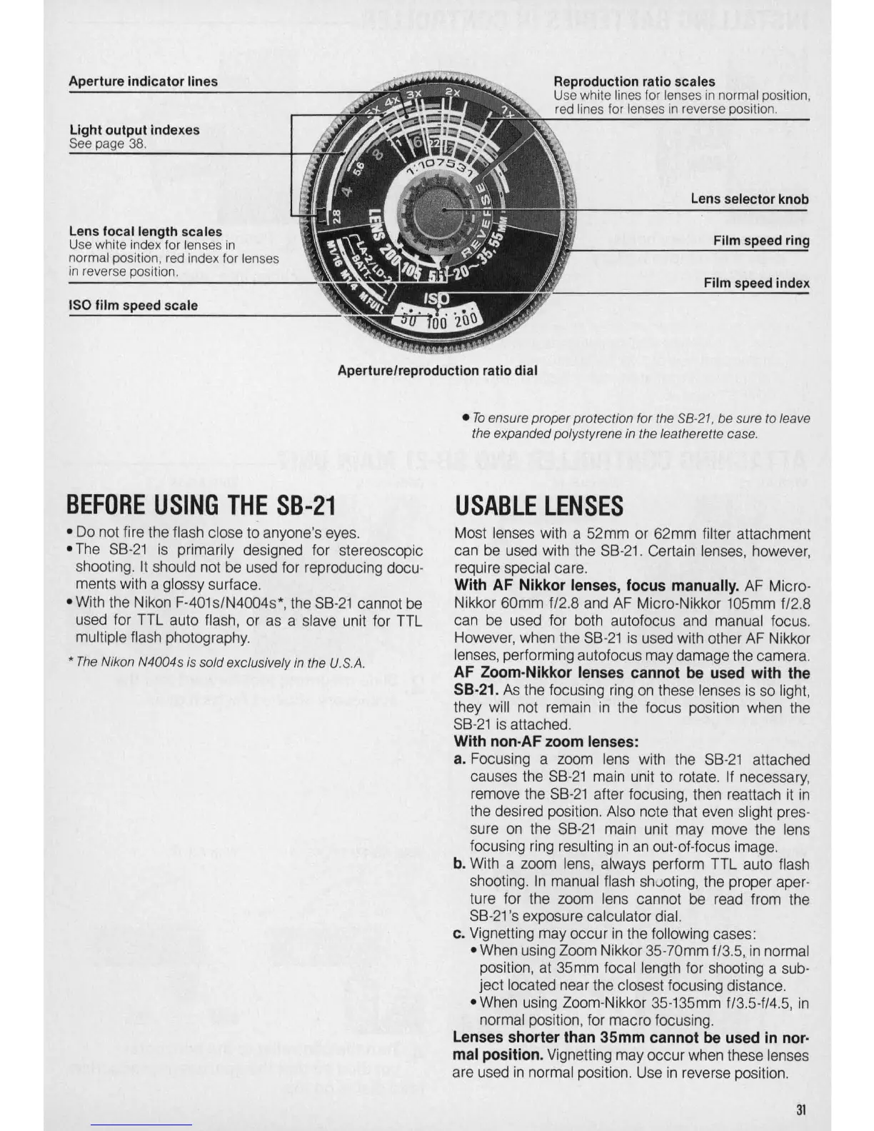 can be used with the 58-21 . Certain lenses, however,