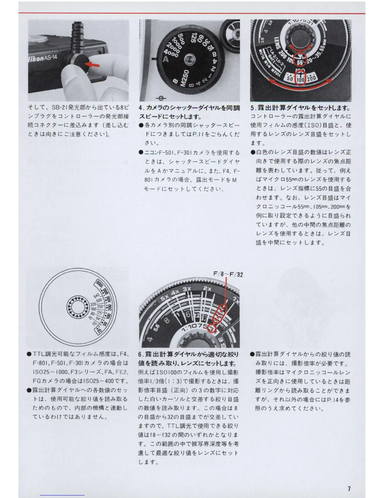Nikon SB-21 - Basic Operation - Settings; Setting Camera Shutter Speed for Sync; Setting the Exposure Calculator Dial