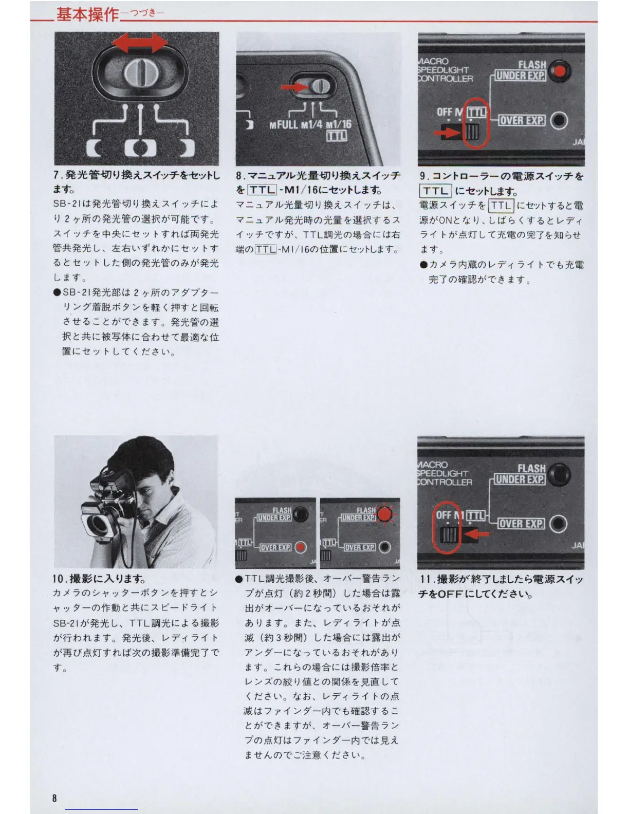 Nikon SB-21 - Basic Operation - Shooting Procedure; Flash Tube Selection and Manual Light Control; TTL Mode Operation and Shooting; Powering Off the SB-21